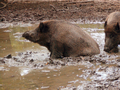 Wildschweine suhlen gern