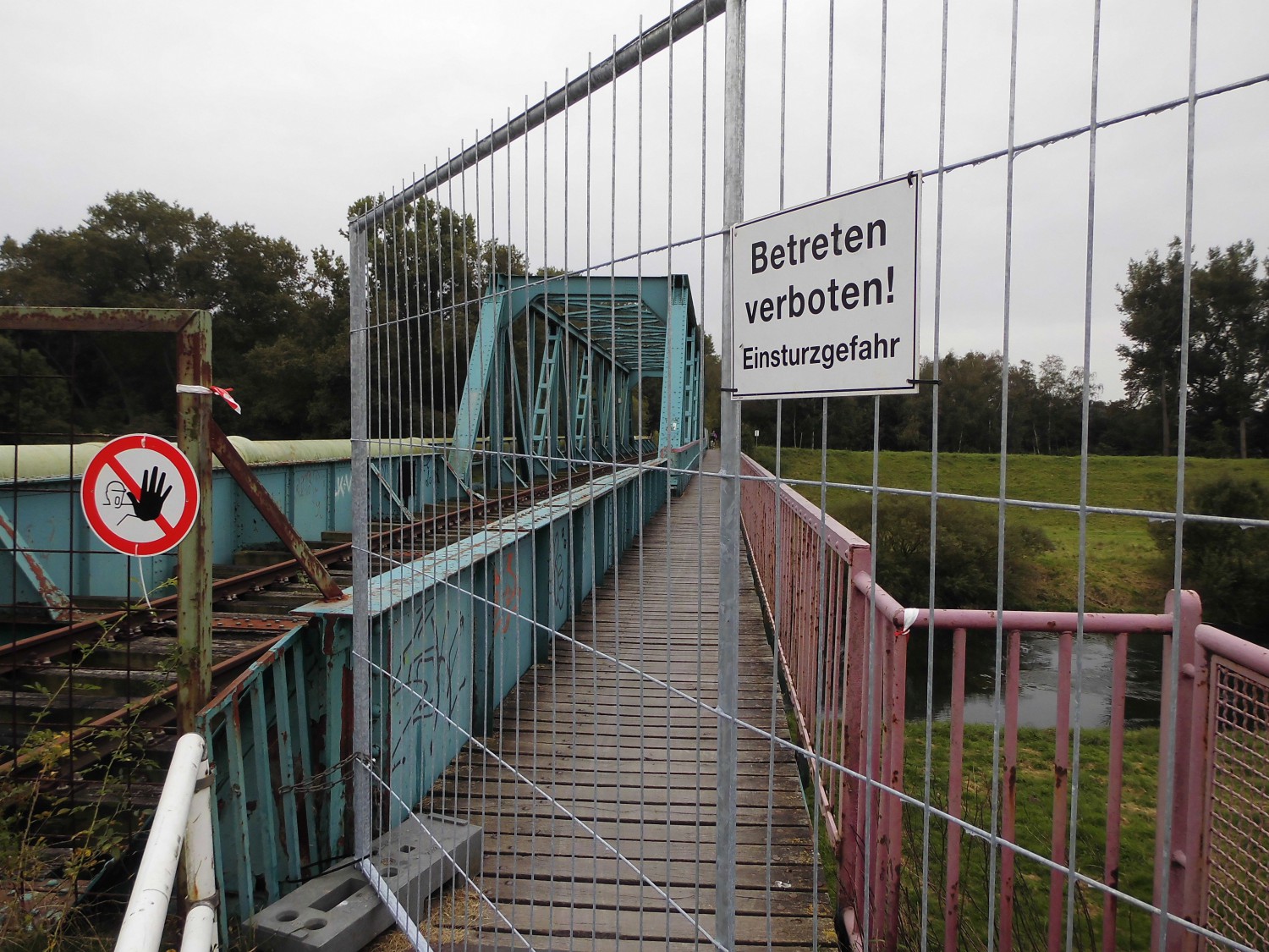 z-Zechenbahnbrucke,2014, Stegemann (2) ← Zurück Weiter → Ende 2014 gesperrte Zechenbahnbrücke; Foto: Wolf Stegemann